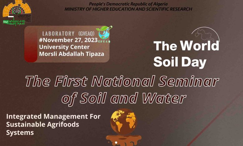 On the occasion of the celebration of World Soil Day (December 2023), the Laboratory for Management and Valorization of Agricultural and Aquatic Ecosystems is organizing the FIRST National SEMINAR ON SOIL & WATER on November 27, 2023. The event will take place at the Institute of Natural and Life Sciences, University Center of Tipaza.
